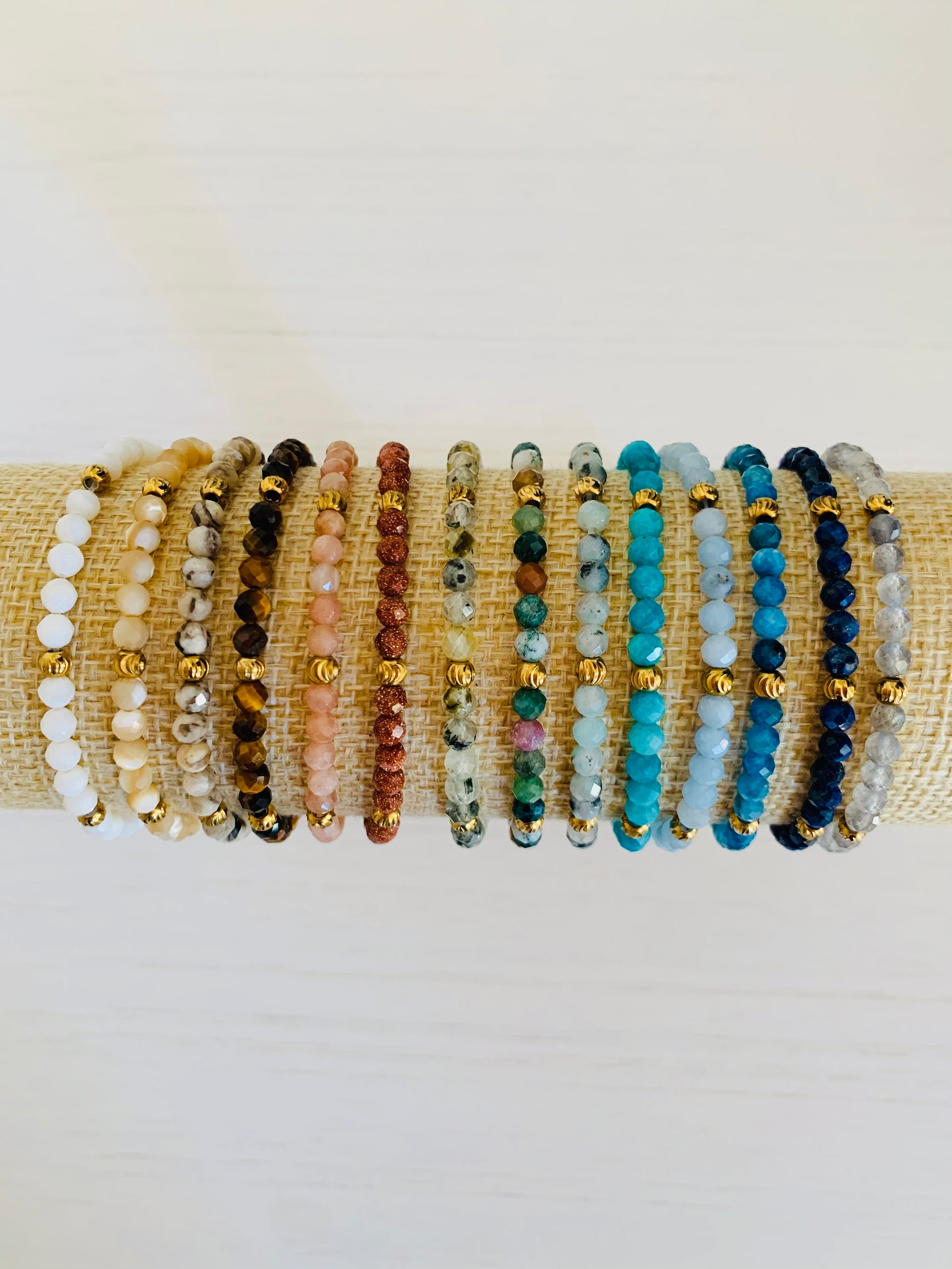 • Bracelet élastique en acier inoxydable et pierre naturelle